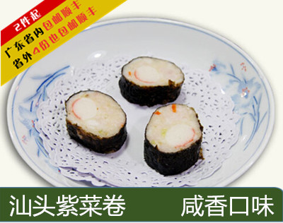 品名:潮汕特产,独家纯手工精制高级虾仁紫菜卷(日式寿司) 口味:咸的 配料:紫菜、生粉、蟹柳、精面、盐、食用油、红萝卜、等其他配 规格:500克 (真空包装发货) 保质期:60天 备注:广东省内2斤包顺丰,省外4斤也包邮顺丰 贮存条件:平时放冰箱急冻!食用之前最好要解冻,口感才最佳、 至于解冻的方法有几种: 1、提前一天放在保鲜柜 2、整袋放在常温下自然解冻即可。