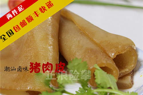 配料表: 新鲜猪肉皮、食用盐、卤水、冰糖、酱油、姜片、料酒
