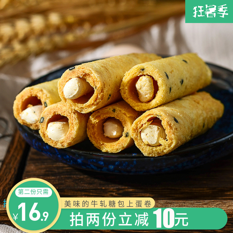 觅潮记|手工牛轧糖蛋卷 台式古早味牛轧鲜蛋卷饼干 网红休闲零食