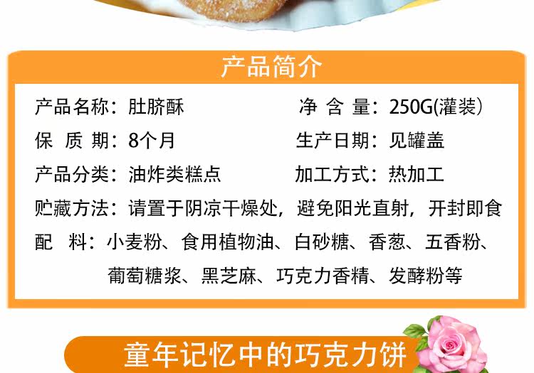 配料表: 小麦粉、食用植物油、白砂糖、香葱、五香粉、葡萄糖浆、黑芝麻、巧克力香精、发酵粉