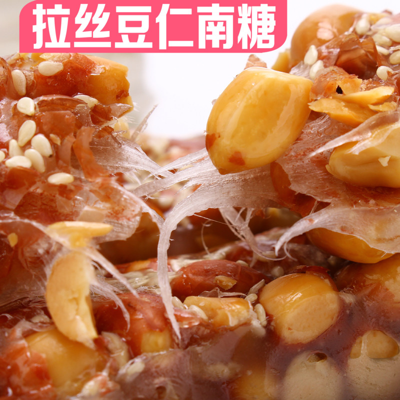 将麦芽糖、食用油等配料按一定比例配料混合熬制,使熔化一体,变成胶状,称为“苷”,然后把“苷”浇注在花生上面,均匀地渗透在炸花生周围即凝成花生浇糖。