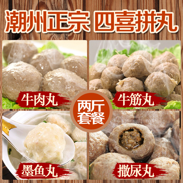 【天天特价】潮州四喜拼丸 牛肉丸牛筋丸撒尿丸墨鱼丸火锅食材