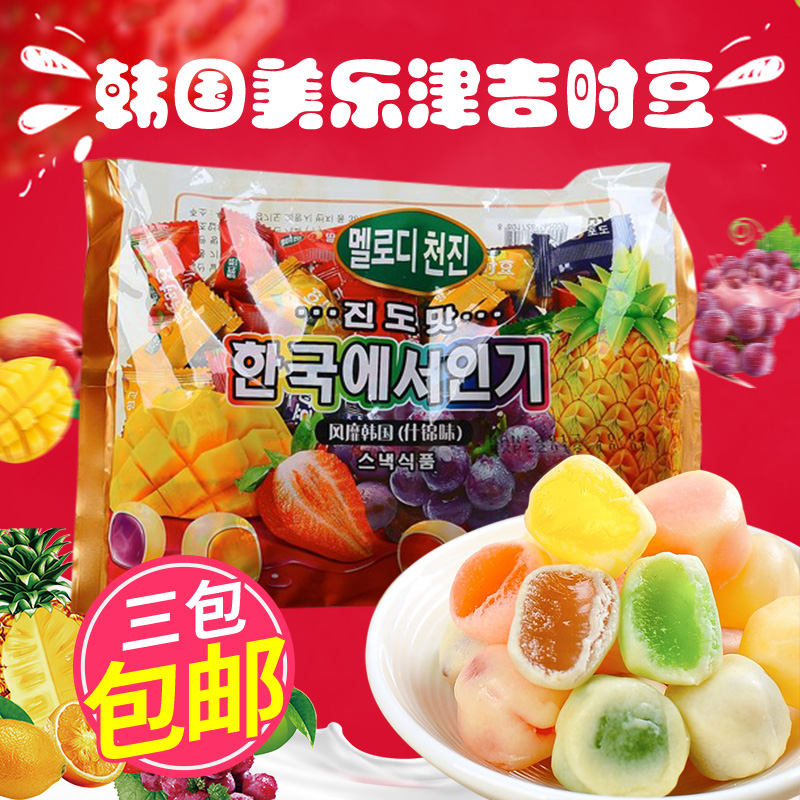 年货糖果韩国吉时豆美乐津吉时豆软糖杂锦水果糖休闲零食送礼438G