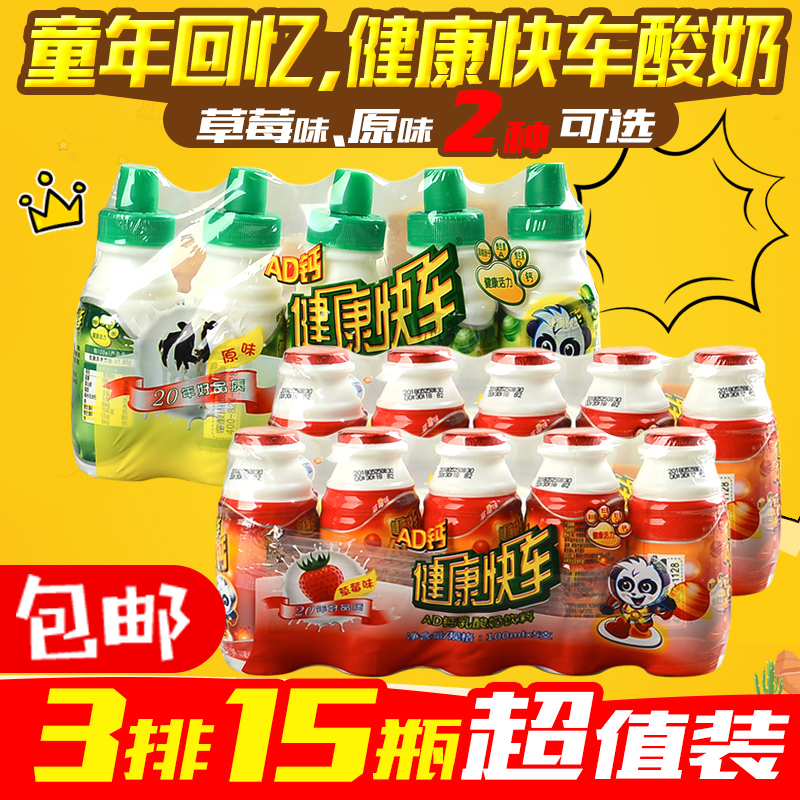 健康快车酸奶AD钙奶儿童乳酸菌饮料童年回忆原味草莓味100ML15瓶