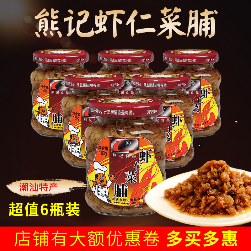 熊记食品虾仁菜脯潮汕特产杂咸小菜下饭菜萝卜干菜脯粒虾仁6瓶装