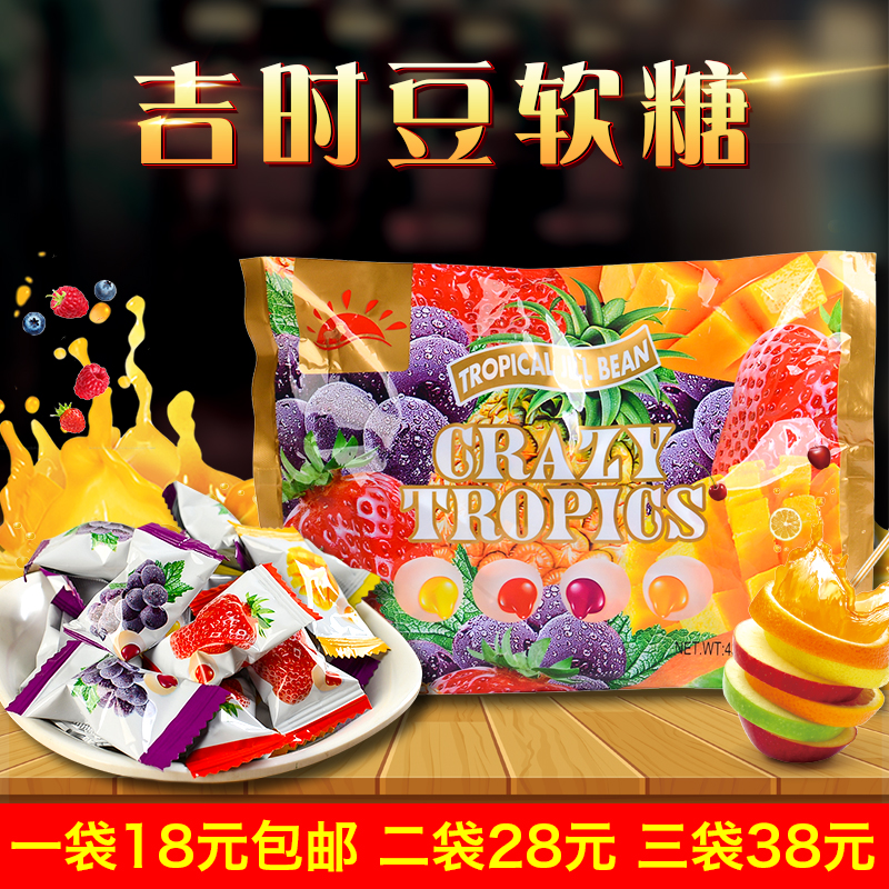 进口糖果年货吉时豆夹心软糖热带水果果汁综合什锦糖喜糖送礼438G