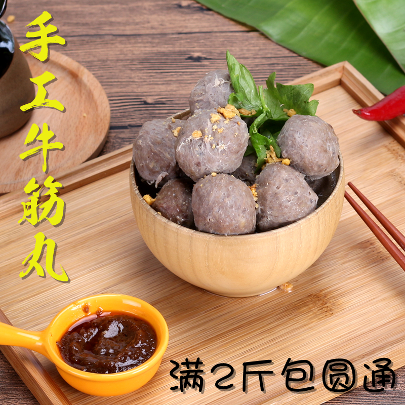 潮客来潮汕特产潮州手打牛筋丸正宗 烧烤火锅牛肉丸子2斤多省包邮