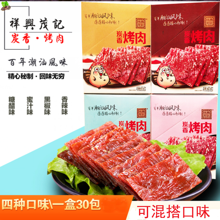 炭香烤肉蜜之味猪肉脯盒装30包祥兴茂记潮汕风味零食