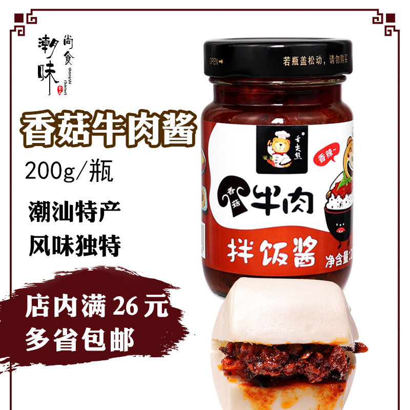 舌尖熊香菇牛肉酱拌饭酱200g/玻璃瓶装 香辣拌面酱菜开胃下饭菜