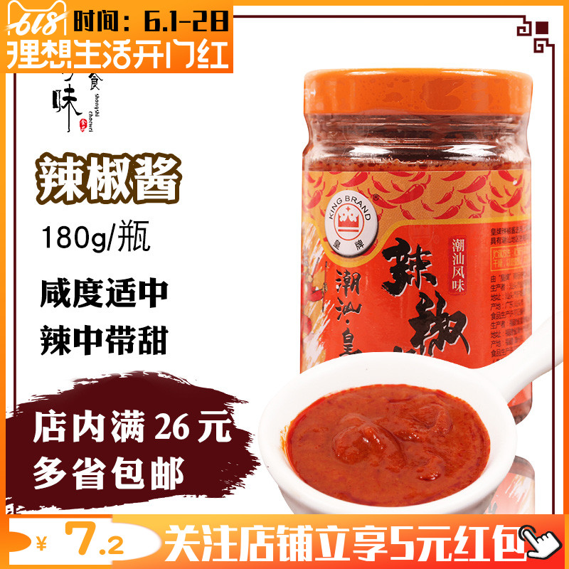 正宗潮汕特产 皇牌辣椒酱 烹饪调料品 高级咸辣风味蘸酱180g/瓶装