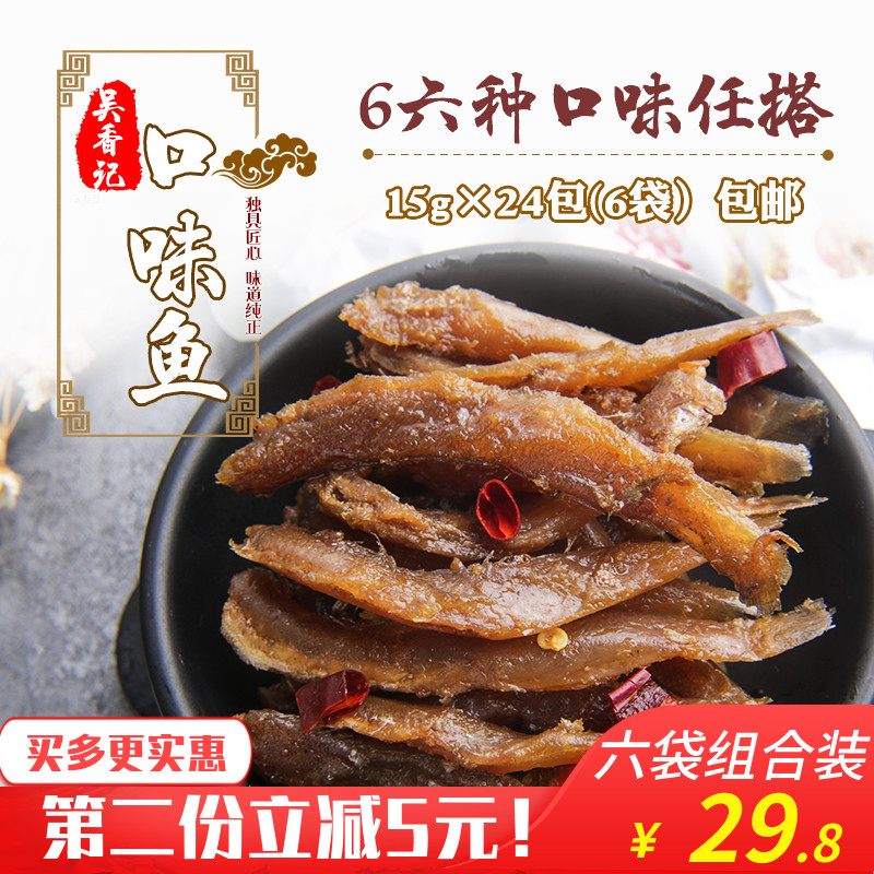 吴香记即食鱼休闲零食6袋 香辣盐焗口味任选拌饭小鱼仔肉干类罐头