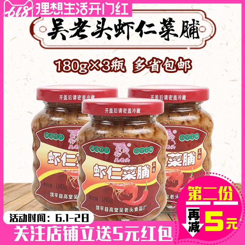 吴老头虾仁菜脯 正宗潮汕特产下饭开胃菜圃丁潮州咸萝卜干3瓶包邮