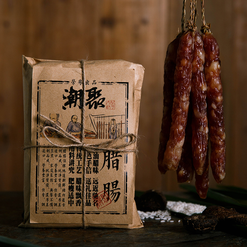 潮聚正宗广式腊香肠广东煲仔饭香肠腊肉腊味潮汕特产500g精美包装