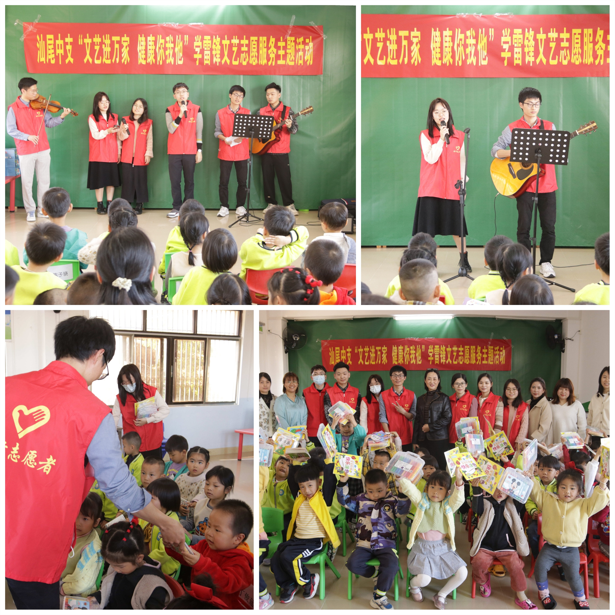 人民银行汕尾中支充分发挥文艺组织的重要纽带作用,引导辖内广大文艺爱好者自觉成为文艺志愿者,组建文艺志愿服务队伍,前往挂驻帮扶村西洋村香洲街道西洋中心幼儿园开展“文艺进万家 健康你我他”学雷锋文艺志愿服务活动。文艺志愿者们通过小提琴独奏《两只老虎》《一闪一闪亮晶晶》、吉他弹唱《童年》《奇迹再现》、大合唱《夜空中最亮的星》等精彩节目,为幼儿园小朋友送去音乐大餐,同时为小朋友们送上爱心文具,鼓励他们在今后的学习生活中奋发向上。此次活动在农村儿童中营造了良好的文艺氛围,使他们充分感受艺术魅力,启蒙他们的音乐梦想。